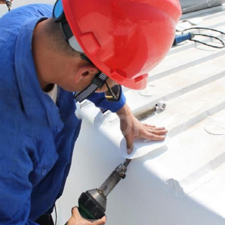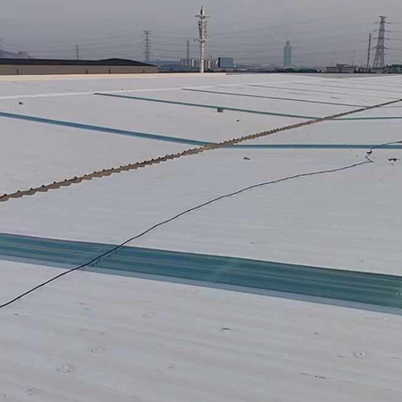 海美防水瓦以鋼板為基板,表面貼覆具有防水防腐功能的TPO/PVC卷材(熱塑性聚烯烴類防水卷材),是海美金屬推出的新一代防水防腐屋面建筑材料。海美防水瓦主要特點(diǎn)就是在各類環(huán)境下不易生銹不易漏水,使用熱風(fēng)焊接進(jìn)行相連,覆蓋全部裸露的縫隙,在使用過程中可以達(dá)到蓄水不滲透的效果,防水效果好,同時(shí)還有較好的抗風(fēng)揭性能和耐老化性能,為鋼結(jié)構(gòu)建筑屋面提供了長(zhǎng)久的防護(hù)。