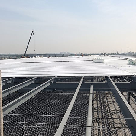 海美防水瓦以鋼板為基板,表面貼覆具有防水防腐功能的TPO/PVC卷材(熱塑性聚烯烴類防水卷材),是海美金屬推出的新一代防水防腐屋面建筑材料。海美防水瓦主要特點(diǎn)就是在各類環(huán)境下不易生銹不易漏水,使用熱風(fēng)焊接進(jìn)行相連,覆蓋全部裸露的縫隙,在使用過程中可以達(dá)到蓄水不滲透的效果,防水效果好,同時還有較好的抗風(fēng)揭性能和耐老化性能,為鋼結(jié)構(gòu)建筑屋面提供了長久的防護(hù)。