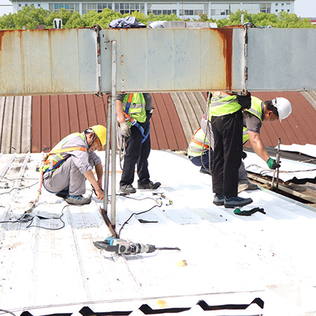 海美防水瓦以鋼板為基板,表面貼覆具有防水防腐功能的TPO/PVC卷材(熱塑性聚烯烴類防水卷材),是海美金屬推出的新一代防水防腐屋面建筑材料。海美防水瓦主要特點(diǎn)就是在各類環(huán)境下不易生銹不易漏水,使用熱風(fēng)焊接進(jìn)行相連,覆蓋全部裸露的縫隙,在使用過程中可以達(dá)到蓄水不滲透的效果,防水效果好,同時(shí)還有較好的抗風(fēng)揭性能和耐老化性能,為鋼結(jié)構(gòu)建筑屋面提供了長(zhǎng)久的防護(hù)。